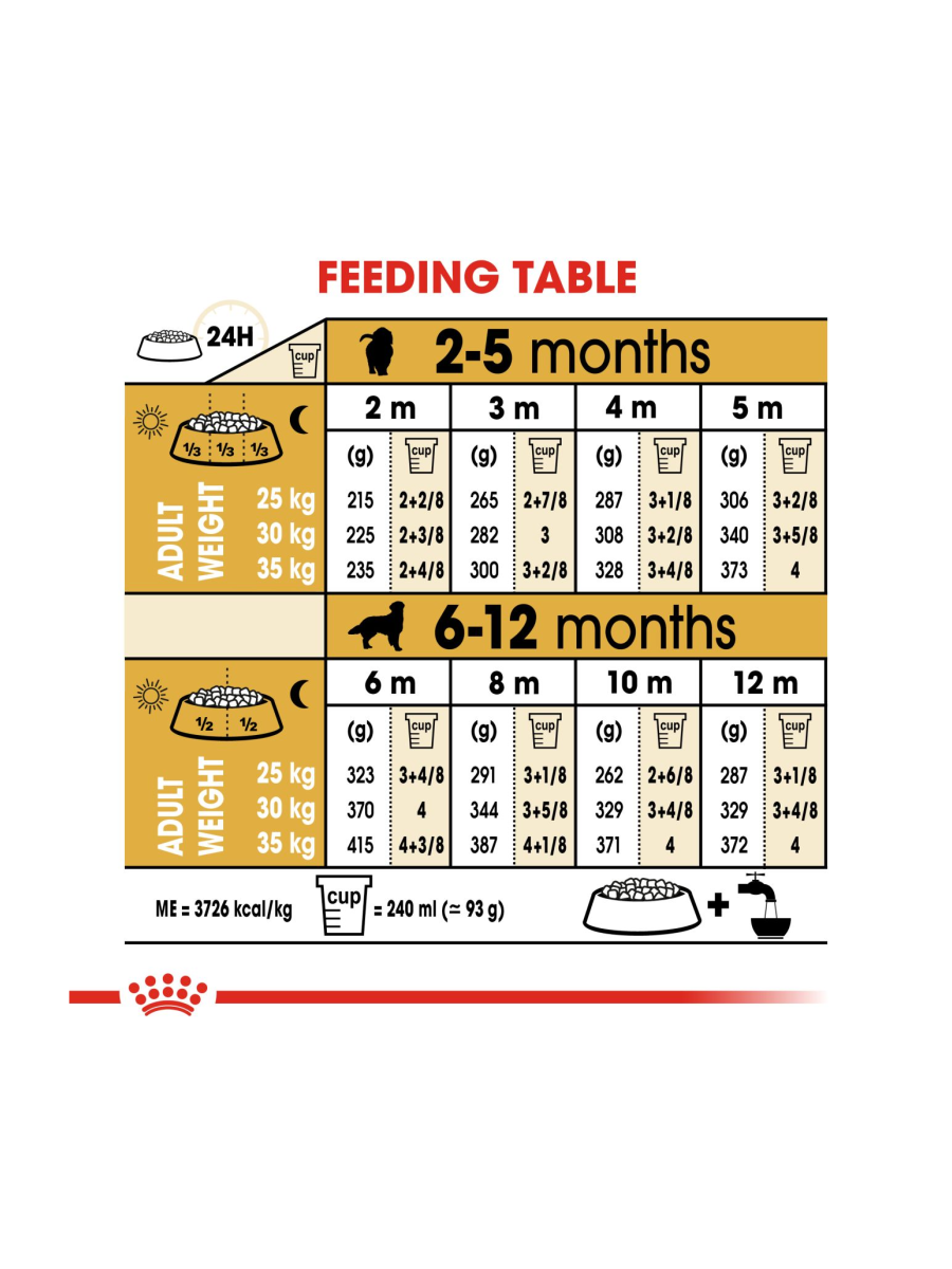 Formulated specifically for Golden Retriever puppies, Royal Canin's dry puppy food provides the ideal balance of nutrients for their growing bodies. With a precise combination of protein, fat, and calcium, this food promotes healthy bone development and a strong immune system. Give your puppy the best start with Royal Canin.