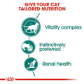 Royal Canin Instinctive Adult Cat Food for 7+ Years is a wet food specially formulated to meet the nutritional needs of senior cats. Enriched with antioxidants, vitamins, and minerals, it helps maintain energy, vitality, and overall health in ageing cats. Controlled mineral levels support renal health, while the palatable texture and aroma make it instinctively preferred, encouraging consistent food intake. With complete and balanced nutrition, this formula ensures healthy organs, a glossy coat, and overall wellbeing. Vet recommended, it delivers science-backed, targeted nutrition to help senior cats stay active, healthy, and comfortable during their golden years.