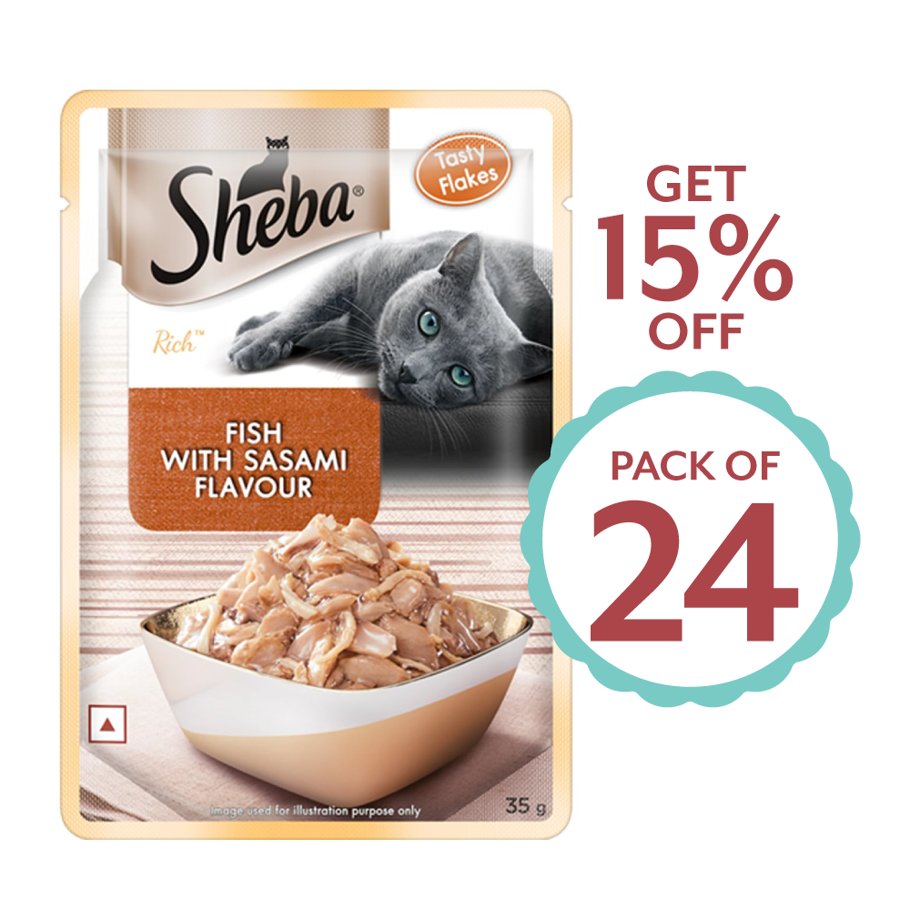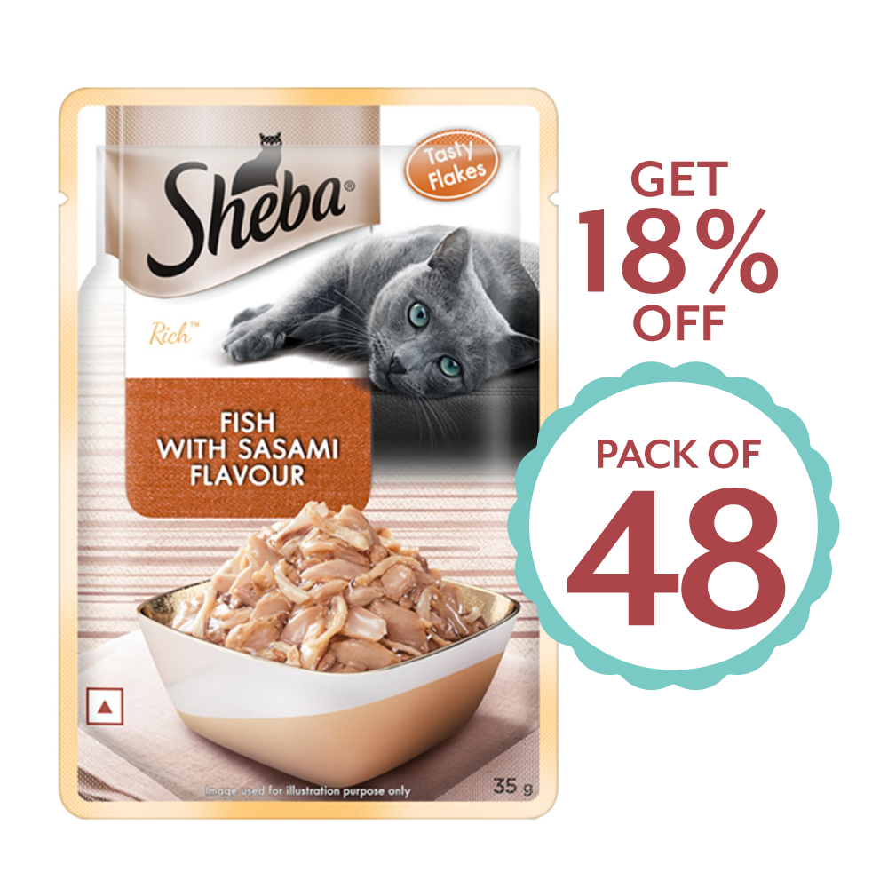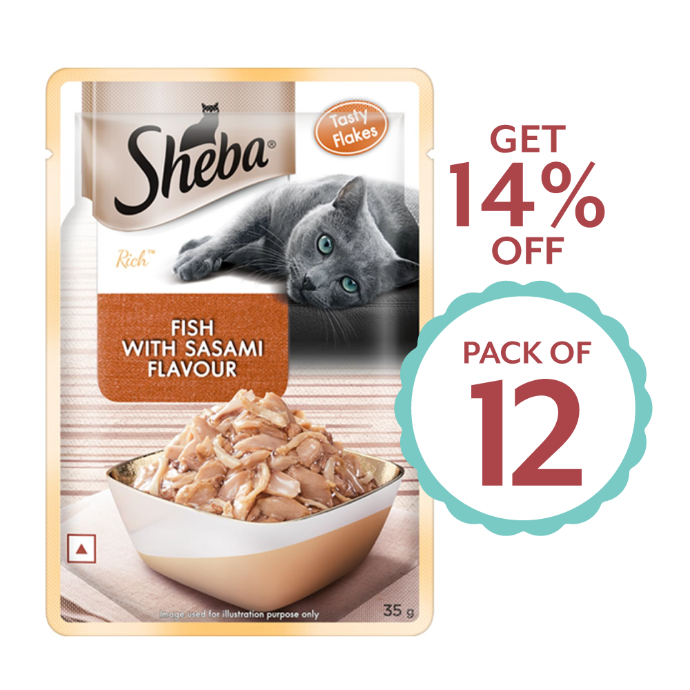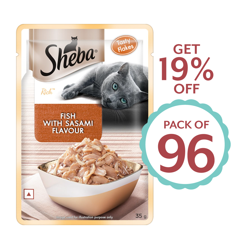 Sheba® Fish with Sasami is premium wet cat food for your adult cat (+ 1 years). Nothing says love like Sheba®'s range of premium Cat Food, containing a special fish mix that your cat will love. Your adult pet cat adores the taste of real meat and Sheba® ensures your cat savors every bit of it through its range of premium cat food. This protein in gravy recipe also contains essential vitamins and minerals, so this premium palate for your cat delivers a mouth-watering feast, without compromising on the goodness.