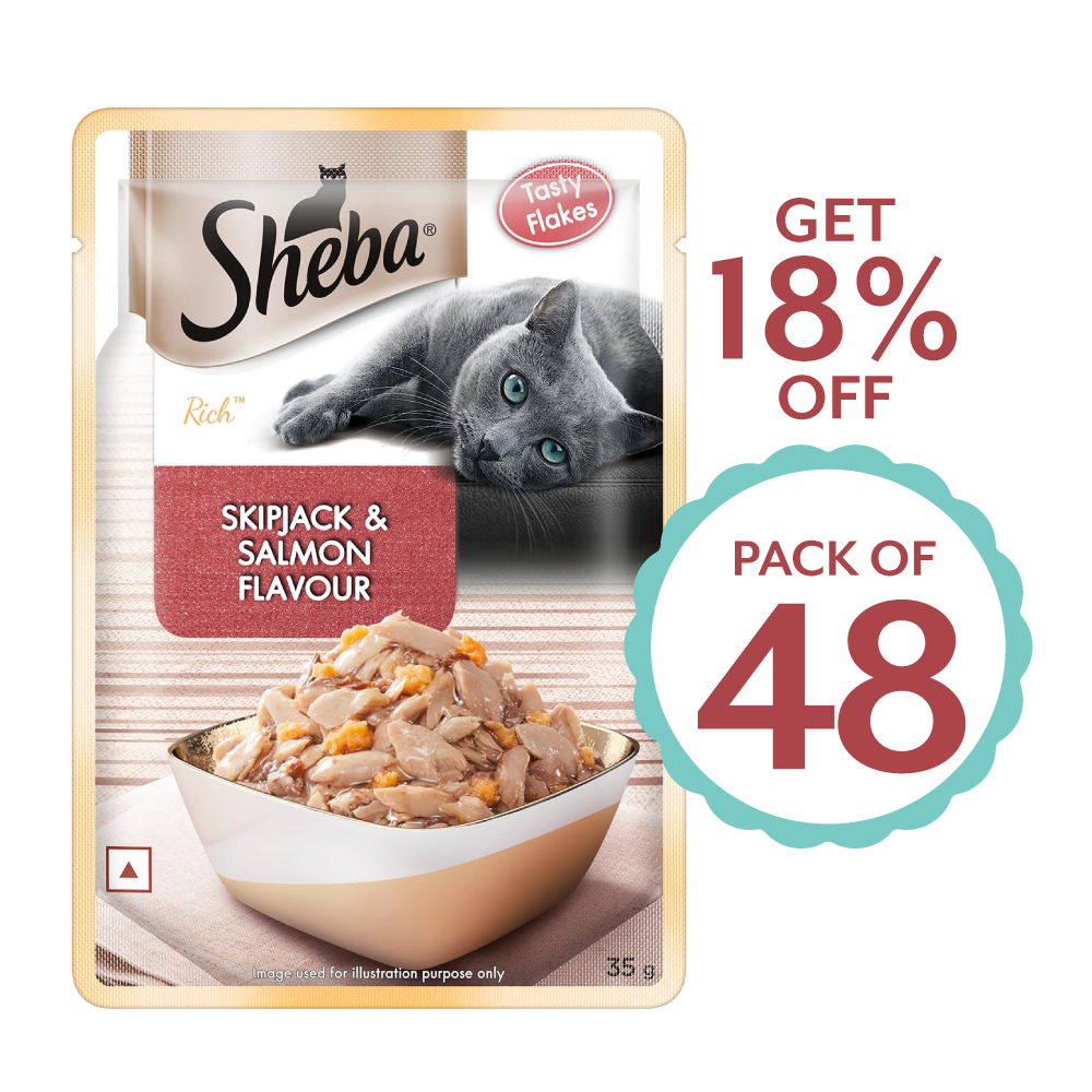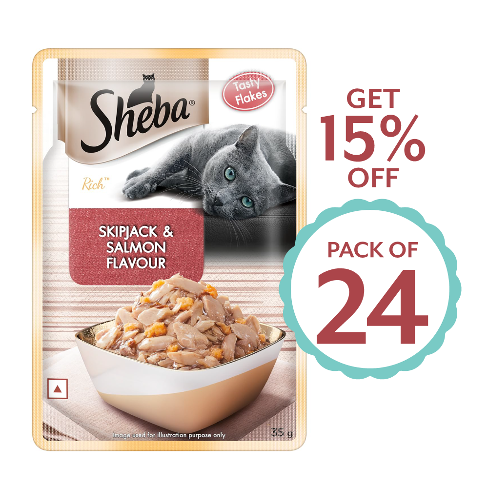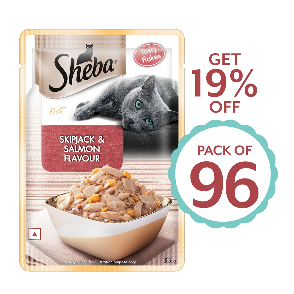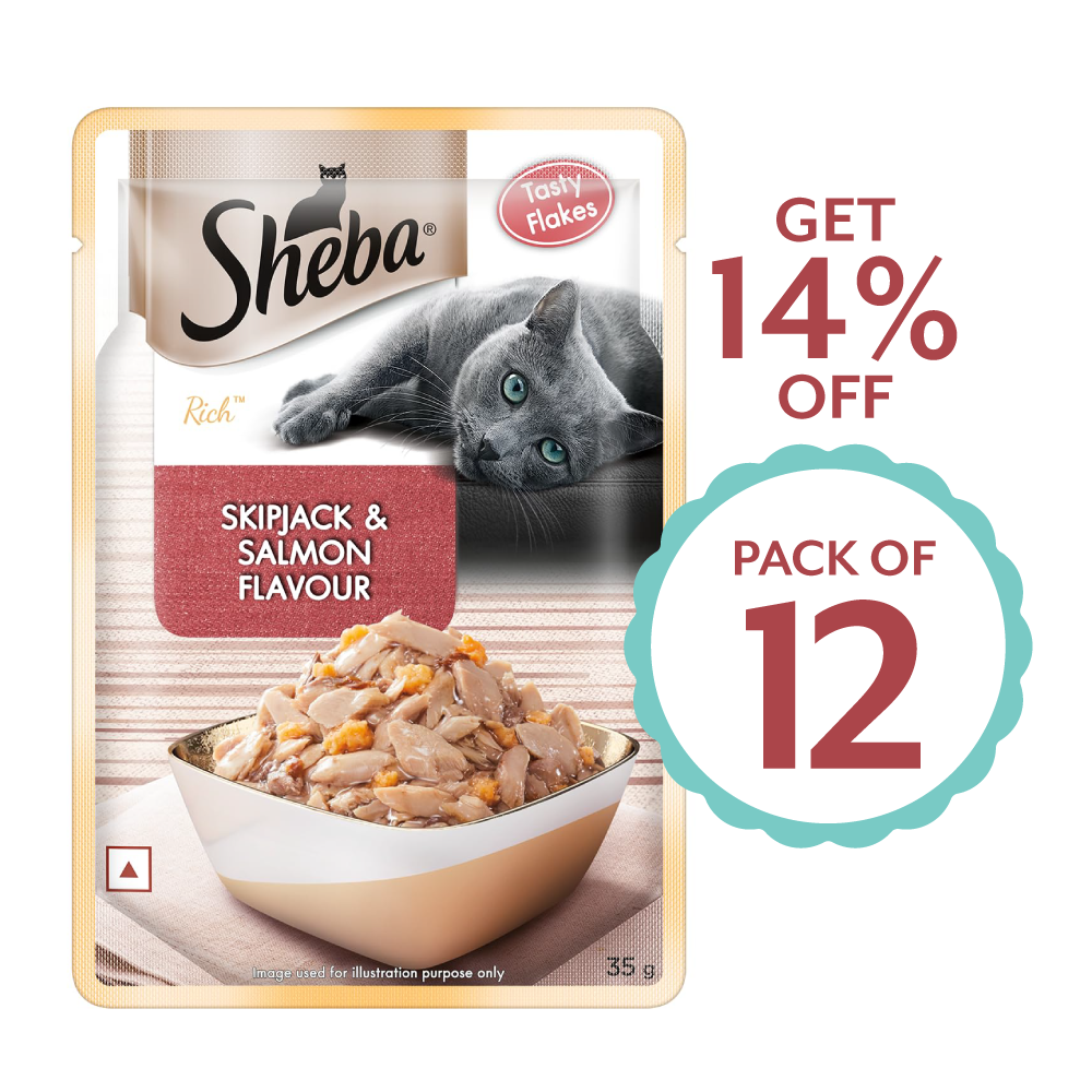 Sheba® Skipjack & Salmon Fisgh Mix is premium wet food for your adult cat (+1 years). Nothing says love like Sheba®'s range of premium Cat Food, containing a special fish mix that your cat will love and adore. Your adult pet cat adores the taste of real meat and Sheba® ensures your cat savours every bit of it through its range of premium cat food. This protein in gravy cat food recipe also contains essential vitamins and minerals, so this premium palate for your cat delivers a mouth-watering feast, without compromising on the goodness, making it an ideal for cats. Treat your furry friend to the satisfying taste of Sheba® Feast of Flakes wet cat food.