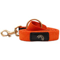 Hand crafted Flat type leash made from 100% Cotton Canvas with veg tanned Leather trims in contrast colors.Canvas Colors are Lasting and does not bleed if wet. This product can be cleaned with water. All metal accessories are made of Solid Brass. Available in three sizes viz. Small, Medium & Large. Shown here is size Small. Hand Stitched: Leather Trims are Hand Stitched with heavy duty thread for better results.Made In India: This product is made entirely with Indian raw materials.