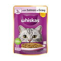 WHISKAS® Salmon in Gravy is a balanced wet cat food recipe that provides moisture and nourishment for a healthy, active growing cat that requires specific care and nutrition. A cat’s love for fish is blended with loads of calcium, phosphorus, proteins, antioxidants, vitamins & minerals, to maintain its fur, heart-health, weight, skin, teeth, muscles, bones and overall immunity. Wet cat food appeals to the palate of fussy eaters and gives them the delight of relishing a juicy, wholesome meal while strengthening them from the inside.